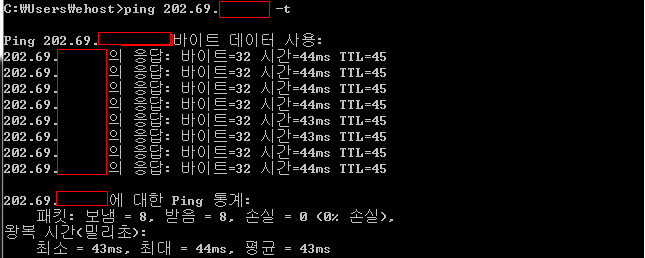 홍콩서버호스팅 임대 서버로 한국 KT, LG 회선을 사용하는 사용자 PC에서 ping test를 진행하였으며