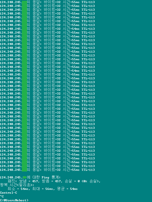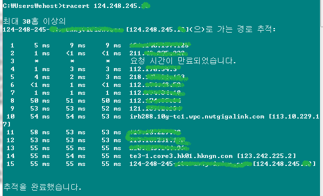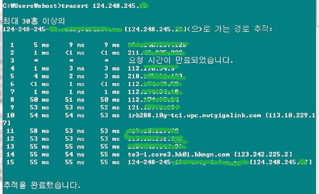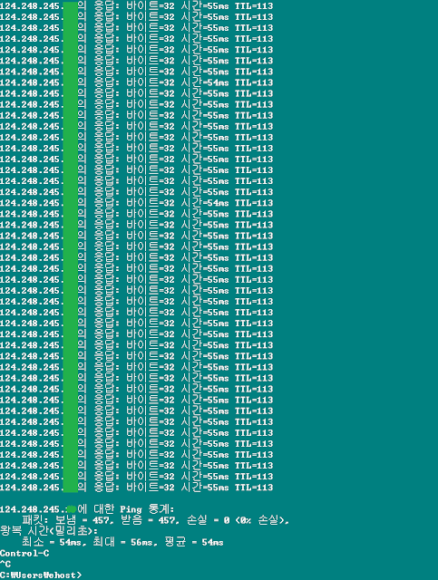 홍콩 서버호스팅 팜까지 ping으로 테스트한것인데요