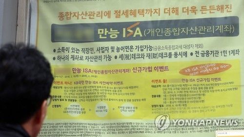 (서울=연합뉴스) 성서호 기자 = 금융당국과 금융사들이 작년부터 출시를 준비해온 개인종합자산관리계좌(ISA)가 14일 시판에 들어간다.