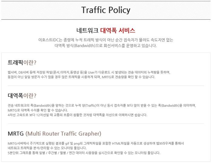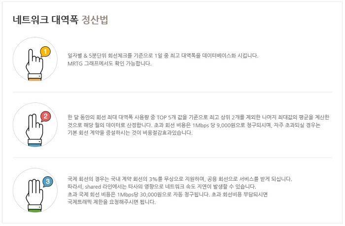 이호스트는 트래픽 종량제가 아닌 대역폭 방식을 택하고 있습니다.