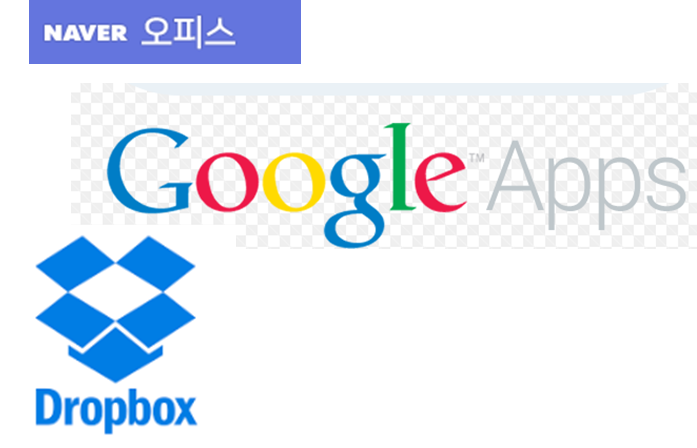 대표적인 서비스로는 MS 오피스 365, Drop box, 구글 앱스, 네이버 오피스 등등 다양합니다.