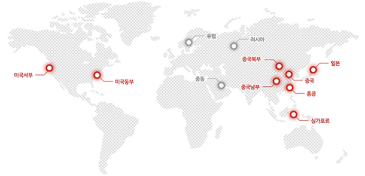 | 도시 | 홍콩 | 싱가폴 | 시드니 | 도쿄 | 실리콘벨리 | 버지니아 | 프랑크푸르트 | 두바이 |
