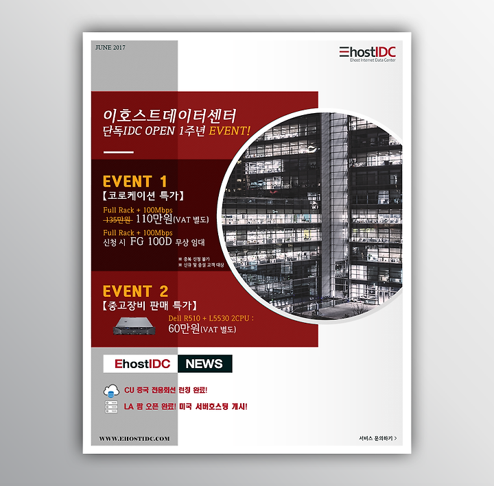 [이호스트ICT]/EVENT [EhostIDC] 이호스트 이벤트 안내드립니다. 이호스트ICT 2017. 8. 1. 20:35 서비스문의◎ 영업1팀 : 070-7600-7311 (3095) ◎ 메일주소 : request@ehostidc.co.kr◎ 카카오톡 플러스친구 : @이호스트데이터센터 ( 또는 '이호스트' 검색)◎ 스카이프 : ehostIDC Hosting Manager◎ 서비스신청하기 : http://cc.ehostidc.co.kr/index.php?/cart/ 저작자표시 비영리 변경금지 (새창열림)