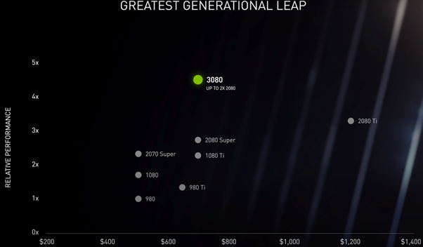 NVIDIA에서 발표한 그래프를 보면 이미 80급에서 동일 가격에 퍼포먼스가 2배가량의 차이가 난다는 것을 확인 할 수 있었습니다.