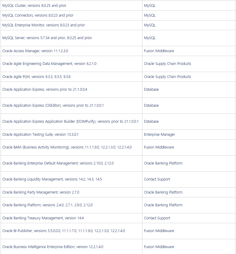 o 오라클社 CPU에서 자사 제품의 보안 취약점 342개에 대한 패치 발표 [1]