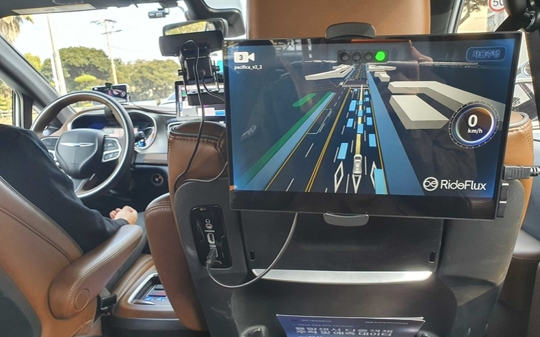 “제주도를 찾은 관광객들이 제주공항에 도착하면 가장 먼저 하는 일이 뭘까요? 바로 렌터카 대여에요. 라이드플럭스는 제주공항과 쏘카스테이션 제주 사이, 왕복으로 약 5km 구간에 자율주행 셔틀 시범 서비스를 10개월간 운영했어요. 편도 기준으로 약 6000여회의 운행을 통해 자동 차선변경 1만6000회, 유턴 2600회, 신호 교차로 통과 1만9000회 등 실증 데이터를 쌓았죠.”