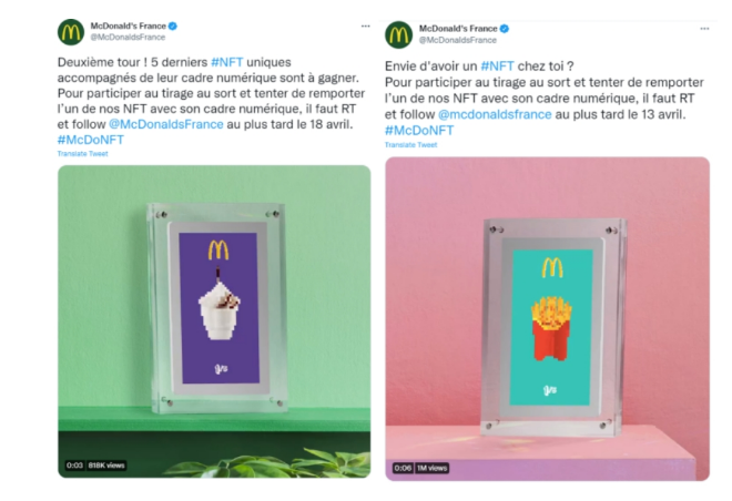 NFT 진출이 화제가 되는 만큼 마케팅 활용을 위한 식품 기업의 진출도 눈에 띈다. 맥도날드 차이나는 지난달 중국 진출 31주년을 기념해 빅맥 루빅스 큐브(Big Mac Rubik’s Cube) NFT 세트를 출시했다. 또한 맥도날드 프랑스는 메뉴 4개를 그림으로 만들어 토큰화 한 ‘맥도NFT(McDoNFT)’를 선보여 이벤트 경품으로 내걸었다. 기존 고객은 물론 블록체인 유저들을 공략해 흥미를 이끌어 내려는 마케팅 전략이다.