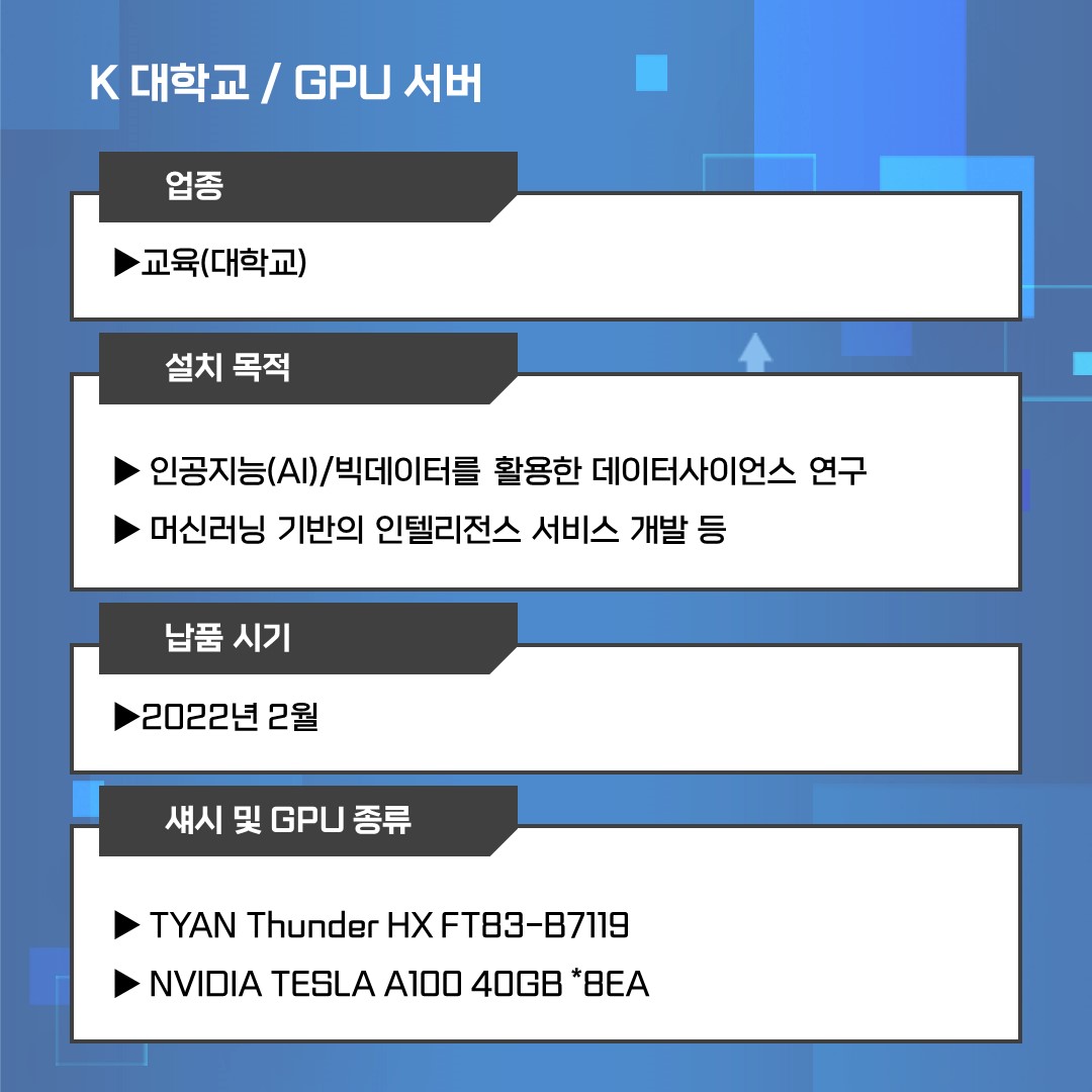 K 대학교 / 데이터사이언스 연구 개발을 위한 GPU 서버 납품 사례