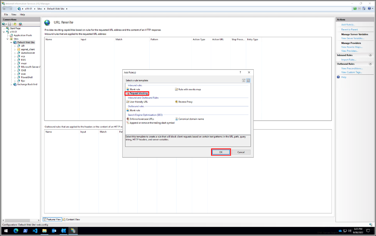 1. IIS Manager -> Default Web Site -> Autodiscover -> URL Rewrite를 클릭