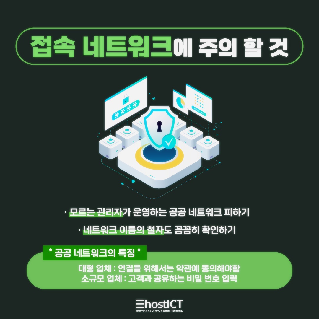 본인이 알지 못하는 관리자가 운영하는 공공 와이파이는 왠만하면 접속을 하지 않는 것이 좋습니다. 또한 음식점이나 카페, 소매점 등에서 공공와이파이에 연결할 경우에는 매장에서 알리고 있는 네트워크 명 철자와 비교를 해보는 습관을 들여야 하는데요. 하루에도 수백 명 이상이 사용하게 되는 공공와이파이는 사이버 범죄의 주요 매개체로 활용될 가능성이 높기 때문에 꼭 면밀하게 확인해보는 습관을 가져야 할 것입니다.