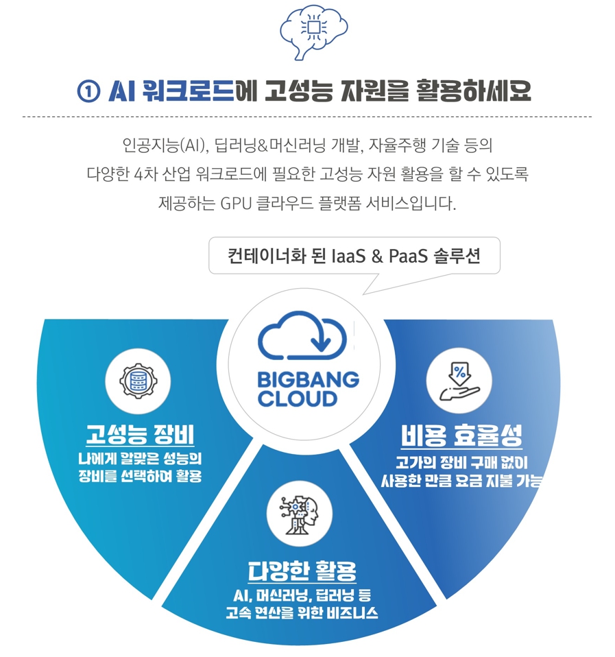 인공지능 AI 연구 개발에는 GPU 클라우드 플랫폼 <빅뱅클라우드>