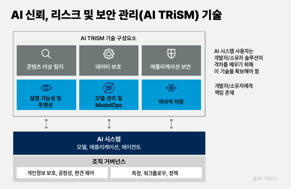 생성형 AI의 대중화로 인해 기업뿐만 아니라 일반 대중들의 AI 사용이 보편화됨에 따라 AI 신뢰, 리스크 및 보안 관리(TRiSM)의 필요성이 커지고 있습니다. 생성형AI의 고질적인 문제점인 할루시네이션(잘못된 정보를 진실처럼 말하는 현상), 학습 데이터의 개인 정보 문제, 나아가 범죄적 활용 등이 사회적 문제로 대두되고 있으며 2024년엔 이와 같은 AI에 관한 획일화 된 법률과 관리가 시급할 것으로 보입니다.