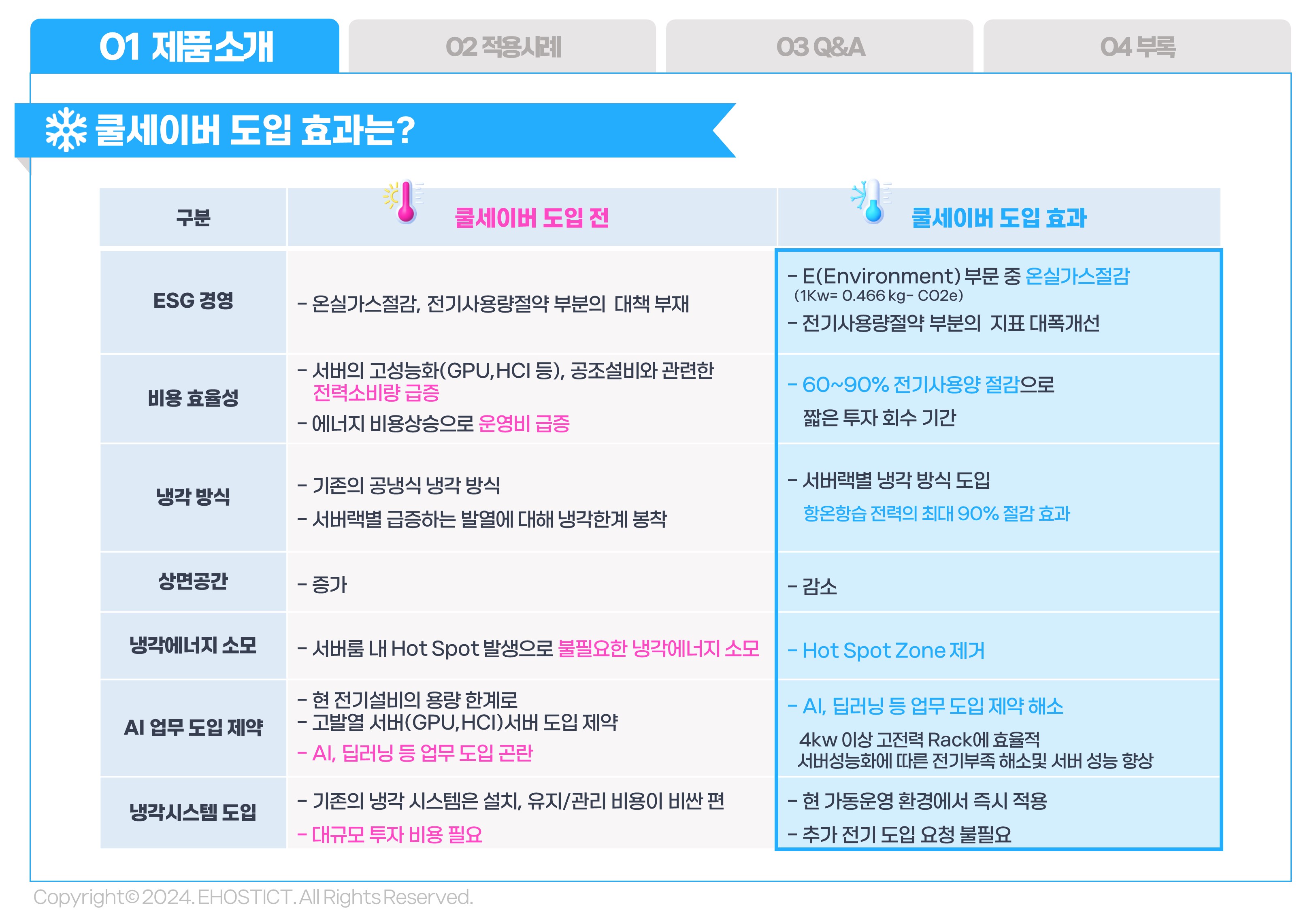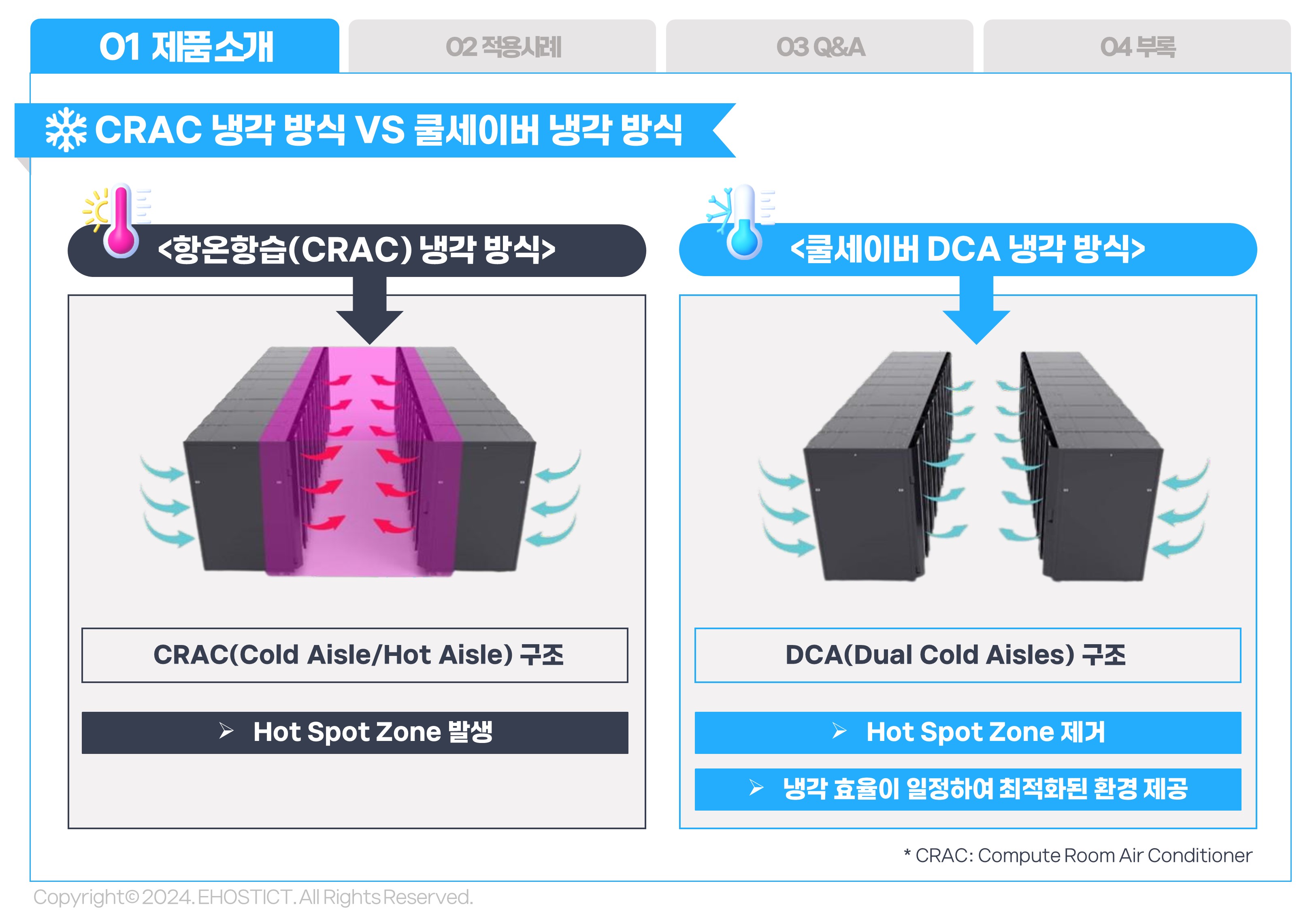 가동율을 최대화하며 수백개의 Rack 추가 설치 공간을 확보하며, 빠른 흐름의 IT 투자 시장에서 신속한 수익 실현 및 재투자를 가능토록 하는 똑똑한 솔루션 쿨세이버입니다.