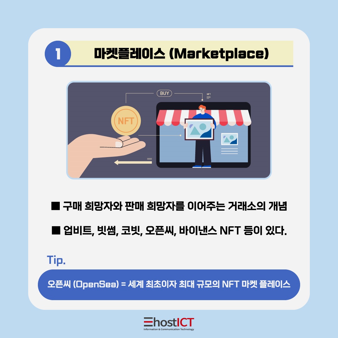 마켓플레이스는 NFT의 유형, 가격, 판매자의 평판 등 다양한 정보를 제공하여 구매자가 원하는 NFT를 찾고 거래할 수 있게 돕습니다. 또한, 마켓플레이스는 NFT의 판매, 구매, 경매 등 다양한 거래 방식을 지원합니다.
