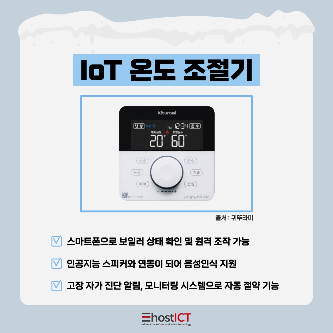 가정이나 사무실의 난방 시스템을 스마트하게 관리할 수 있는 IoT온도 조절기도 각광받고 있습니다.