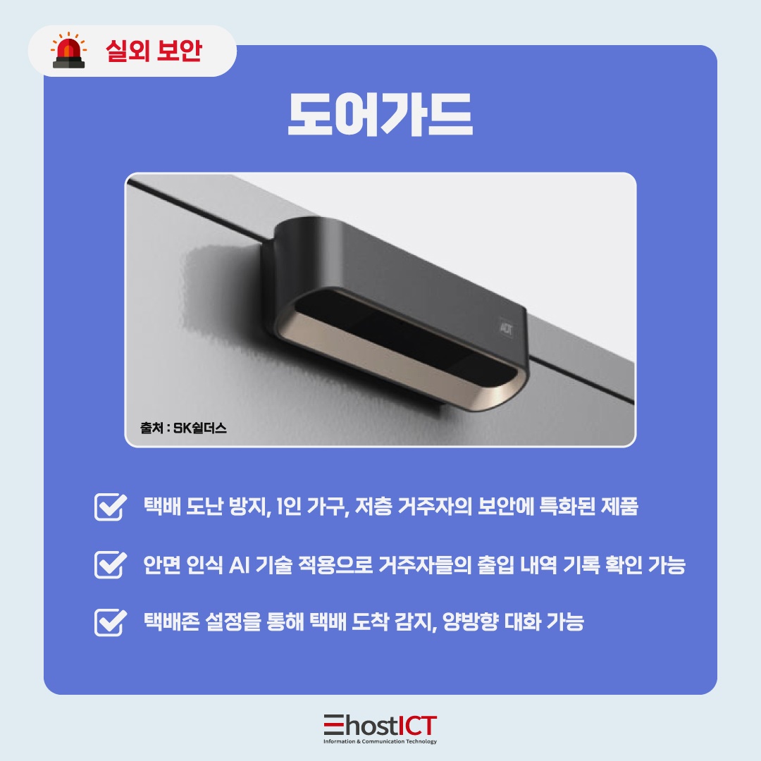 스마트 홈 보안 기술 (Smart Home Security) 사례 첫 번째로, 정보통신기술(ICT)을 활용하여 가정 안전을 지키면서 편의성까지 갖춘 스마트 홈 보안 솔루션 "도어가드"가 있습니다.