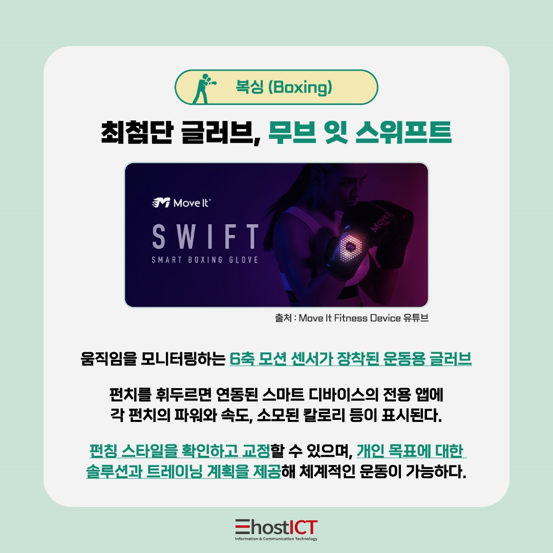 무브잇 스위프트(Move it Swift)는 집에서도 복싱 훈련을 체계적으로 할 수 있도록 도와주는 스마트 복싱 글러브입니다. 이 혁신적인 제품은 사용자의 운동 경험을 향상시키기 위해 최신 기술을 활용하고 있는 제품인데요.