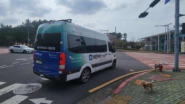 27일 제주특별자치도(이하 제주도) 제주시에 위치한 제주첨단과학기술단지 일대. 호출형 자율주행 셔틀 차량이 승객을 태우고 분주히 달렸다. 카카오모빌리티와 자율주행 기술 기업 라이드플럭스, 제주국제자유도개발센터(JDC)가 협력해 만든 자율주행 셔틀 서비스 '네모라이드(NEMOride)' 차량이다.